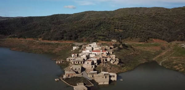 Οι εικόνες από drone είναι εντυπωσιακές καθώς «αποτυπώνουν» το χωριό που έχει χαρακτηριστεί και Ατλαντίδα της Κρήτης, να «χάνεται» και πάλι στο νερό.