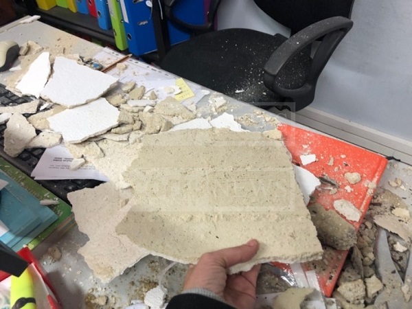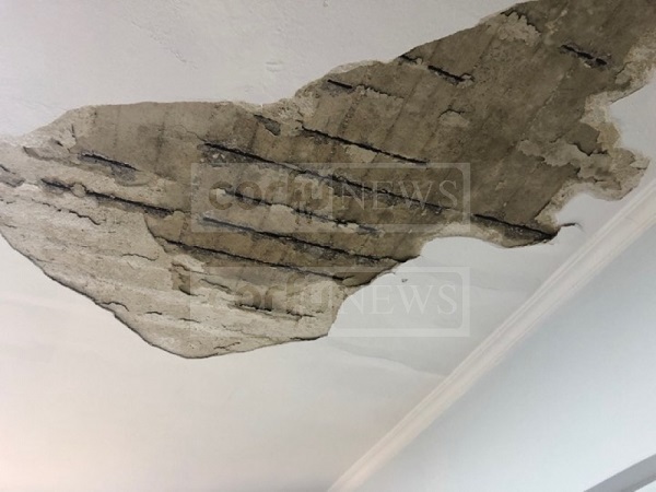 Το κτίριο βρίσκεται στο κέντρο της πόλης στην οδό Καλοχαιρέτου 3 περιοχή Λιστον. Τα κομμάτια από το ταβάνι έπεσαν πάνω της και ευτυχώς δεν την τραυμάτισαν όπως δήλωσαν στο Corfunews οι εργαζόμενες.