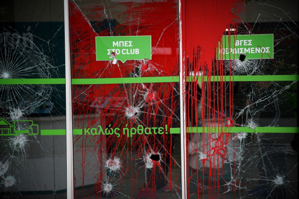 Μέλη της συλλογικότητας έσπασαν με βαριοπούλες τα τζάμια, προξένησαν φθορές στα ταμεία και πέταξαν μπογιές στο εσωτερικό του καταστήματος και στη συνέχεια αποχώρησαν.