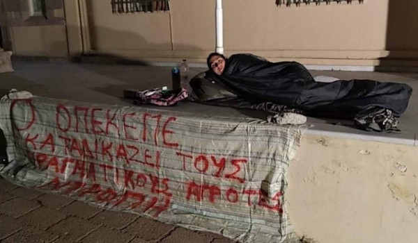 Εργαζόμενοι στη Γενική Γραμματεία Αιγαίου και Νησιωτικής Πολιτικής όπου πραγματοποιεί τη διαμαρτυρία της την είδαν το πρωί σε λιπόθυμη κατάσταση και ειδοποίησαν το ΕΚΑΒ.