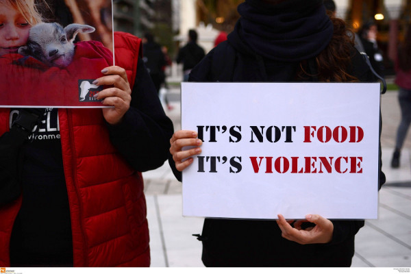 Να σταματήσει το έθιμο με το σούβλισμα του αρνιού ζήτησαν μερικές δεκάδες vegan που συγκεντρώθηκαν το μεσημέρι του Σαββάτου στην πλατεία Συντάγματος. Κρατώντας φωτογραφίες σφαγμένων προβάτων ή αμνοεριφίων που πρόκειται να οδηγηθούν στο σφαγείο, οι vegan χαρακτήρισαν το έθιμο με το σούβλισμα του αρνιού «βάρβαρο» και ζήτησαν την κατάργηση του.
