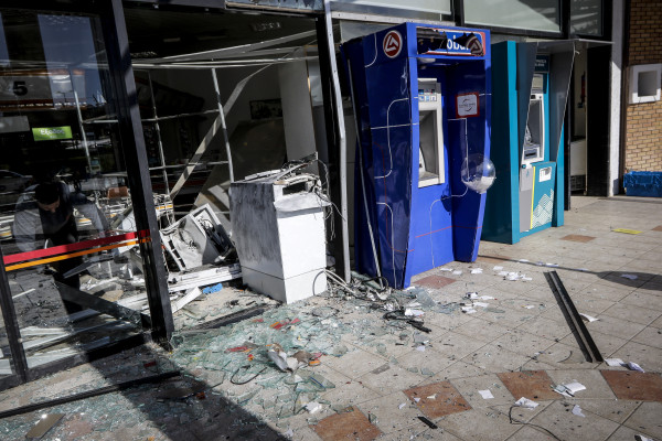 Η έκρηξη στο τρίτο ΑΤΜ, που βρισκόταν στο 40ο χλμ. της εθνικής οδού Αθηνών-Κορίνθου, στο ύψος των Μεγάρων, σε κιόσκι, σημειώθηκε στις 4:20.