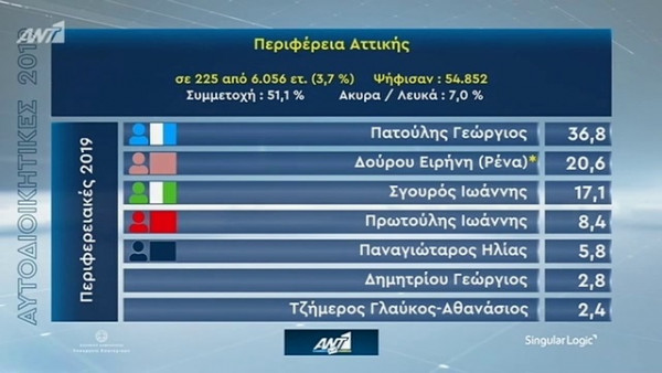 Αποτελέσματα εκλογών 2019: Γιώργος Πατούλης και Ρένα Δούρου φαίνεται πως θα πάνε στον δεύτερο γύρο των περιφερειακών εκλογών.