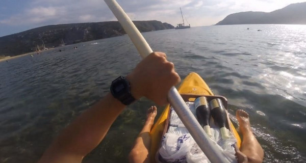 Ο «ντελιβεράς» φορά το σωσίβιο του, πιάνει το κουπί, μπαίνει στο κανό και μεταφέρει φαγητά και ποτά στα σκάφη που έχουν δέσει στο Πόρτο Κουφό.