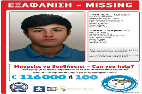 Για την εξαφάνιση ενημερώθηκε σήμερα το Χαμόγελο Του Παιδιού το οποίο προχώρησε στη δημοσιοποίηση των στοιχείων του παιδιού.