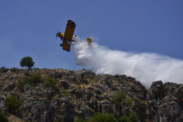 Στην μάχη της κατάσβεσης έχουν ριχτεί 47 πυροσβέστες με 20 οχήματα και 5 εναέρια μέσα και δυο ομάδες πεζοπόρων τμημάτων.