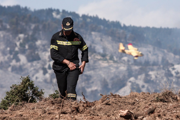 Δυνάμεις της Πυροσβεστικής επιχείρησαν σε δύσβατα σημεία τη νύχτα για να περιορίσουν τα μέτωπα.