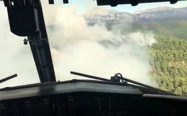 Το βίντεο δείχνει ένα από τα τρία αεροσκάφη που έφτασαν από την Ιταλία και την Ισπανία να δίνει μάχη με τις φλόγες.