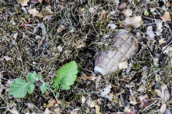 Η χειροβομβίδα του Β' Παγκοσμίου Πολέμου βρισκόταν σε εμφανές σημείο κοντά σε θάμνους, σε αγροτικό δρόμο.