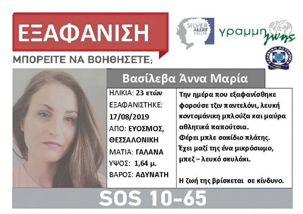 Η Βασίλεβα Άννα Μαρία εξαφανίστηκε στις 17 Αυγούστου και φορούσε τζιν παντελόνι, λευκή κοντομάνικη μπλούζα και μαύρα αθλητικά παπούτσια.