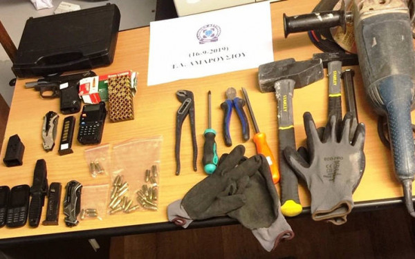 Στην κατοχή του, καθώς και στο σπίτι του, βρέθηκαν και κατασχέθηκαν κινητά τηλέφωνα, φορητοί υπολογιστές, ένα πιστόλι, 83 φυσίγγια, ένα ασύρματος, αλλά και 49,5 γραμμάρια κάνναβης.