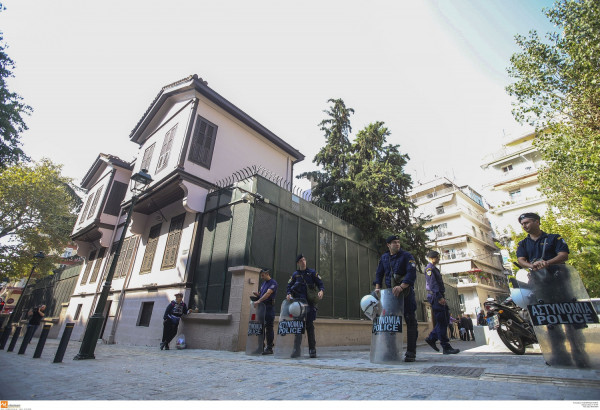 Είχε προηγηθεί λίγες ώρες νωρίτερα η διαμαρτυρία 12 ατόμων (11 άνδρες και μία γυναίκα) στον αύλειο χώρο του προξενείου της Τουρκίας, που συνελήφθησαν διότι ξεδίπλωσαν πανό ενάντια στις στρατιωτικές επιχειρήσεις στη Συρία, φωνάζοντας συνθήματα αλληλεγγύης στον κουρδικό λαό. Η δικογραφία που σχηματίστηκε εις βάρος τους αφορά τα πλημμελήματα της διατάραξης οικιακής ειρήνης και της έκθεσης σε κίνδυνο αντιποίνων (άρθρο 141 Π.Κ.).