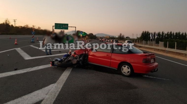 Η σύγκρουση ήταν σφοδρή και η μηχανή καρφώθηκε κυριολεκτικά στο φτερό του αυτοκινήτου, ενώ ο οδηγός "πέταξε" και προσγειώθηκε πολλά μέτρα μακριά μέσα στο οδόστρωμα.