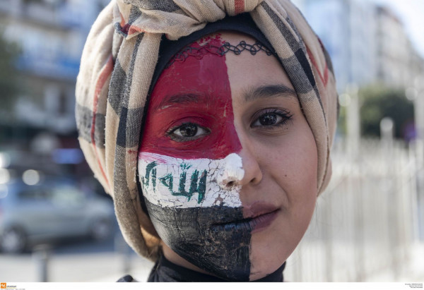 Κρατώντας πλακάτ με φωτογραφίες από αντικυβερνητικές διαδηλώσεις στο Ιράκ, που είχαν ως αποτέλεσμα τον θάνατο πολλών συμπατριωτών τους, ζήτησαν ειρήνη και καλύτερες συνθήκες διαβίωσης, φωνάζοντας συνθήματα κατά της ιρακινής κυβέρνησης.
