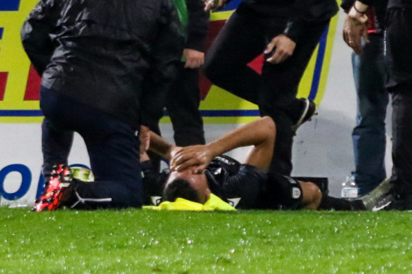 Συγκεκριμένα ο Ζαμπά έφυγε στα χέρια των γιατρών, αλλά και του ποδοσφαιριστή της Δόξας, Νίκου Ιωαννίδη. Προκειμένου να μην πατήσει το δεξί του πόδι, στο οποίο και πονούσε αρκετά.