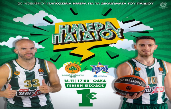 Η ΚΑΕ Παναθηναϊκός ΟΠΑΠ καλεί όλους τους φίλους της ομάδας να δώσουν το «παρών» το Σάββατο στο γήπεδο με τις οικογένειές τους, προκειμένου να παρακολουθήσουν την εντός έδρας αναμέτρηση με τον Ιωνικό Affidea (16/11, 17.00), στο πλαίσιο της οποίας θα διεξαχθεί «Η Γιορτή του Παιδιού»!