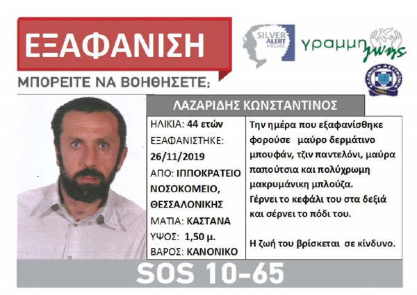 Τα ίχνη του Κωνσταντίνου Λαζαρίδη χάθηκαν στις 26 Νοεμβρίου από το νοσοκομείο Ιπποκράτειο, όπου μεταφέρθηκε με ασθενοφόρο του ΕΚΑΒ από το σπίτι του.