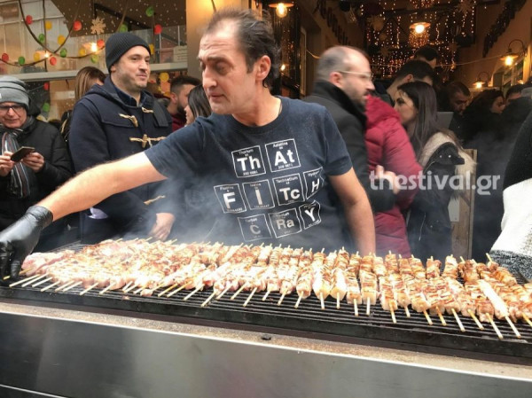 Μετά τα καθιερωμένα κάλαντα, τη σκυτάλη πήραν οι ψησταριές με τα σουβλάκια να έχουν την τιμητική τους.