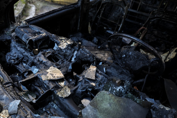 Περίπου μία ώρα αργότερα, στις 06:05 το πρωί, στις φλόγες τυλίχθηκε ΙΧ που ήταν σταθμευμένο επί της οδού Δημοσθένους στον Εύοσμο. Στο συμβάν επιχείρησαν 6 πυροσβέστες με 2 οχήματα.