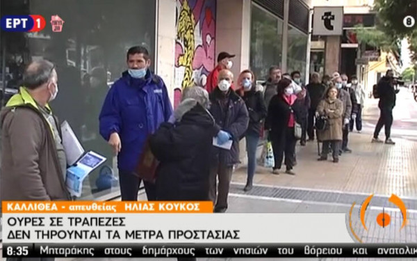 Κάποιοι περιμένουν για να εξυπηρετηθούν στα ταμεία είτε για να πληρώσουν υποχρεώσεις ή και για να κάνουν αναλήψεις χρημάτων.