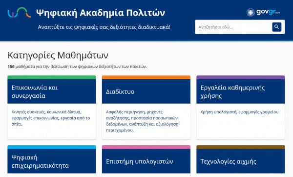 Στην πρώτη της έκδοση η Ψηφιακή Ακαδημία Πολιτών διαθέτει πάνω από 150 μαθήματα βασικού και προχωρημένου επιπέδου που αντιστοιχούν σε πάνω από 1.500 ώρες εκπαίδευσης.