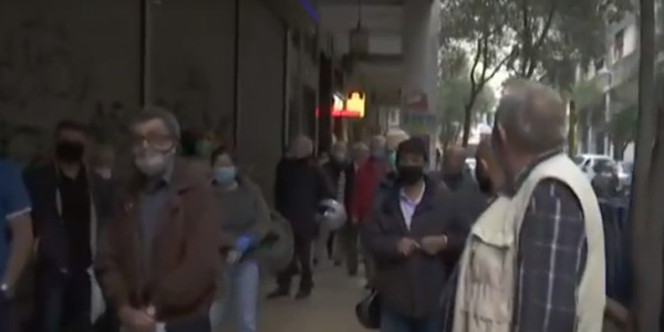 Ο κόσμος στα πλάνα φαινόταν πάντως να τηρεί τα μέτρα απόστασης και να φορά μάσκες, αλλά η ουρά είναι κάτι το πρωτοφανές, καθώς καλύπτει πολύ μεγάλη απόσταση, με τον κόσμο να περιμένει υπομονετικά από νωρίς το πρωί.