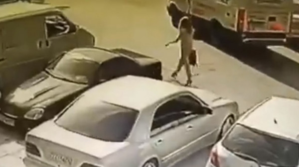 Στο βίντεο φαίνεται η στιγμή, όπου μετά την επίθεση, η 34χρονη κοπέλα φέροντας εγκαύματα από το καυστικό υγρό, βγαίνει τρέχοντας από την πολυκατοικία για να πάει στο απέναντι πεζοδρόμιο όπου είναι το φαρμακείο.