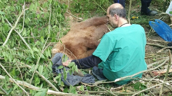 Μέλη της οργάνωσης προσέγγισαν το σημείο, αναισθητοποίησαν το ζώο και αφού αφαίρεσαν την παγίδα, κτηνίατρος περιποιήθηκε τα τραύματα που είχε η αρκούδα στο λαιμό και στο πόδι και καθάρισε τις πληγές που δημιουργήθηκαν στην προσπάθειά της να απελευθερωθεί. Της τοποθετήθηκε ορός και έπειτα από λίγη ώρα ξύπνησε και έτρεξε και πάλι ελεύθερη.