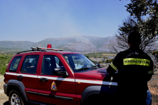 Στο έργο της κατάσβεσης λαμβάνουν μέρος 10 πυροσβέστες.με πέντε οχήματα.