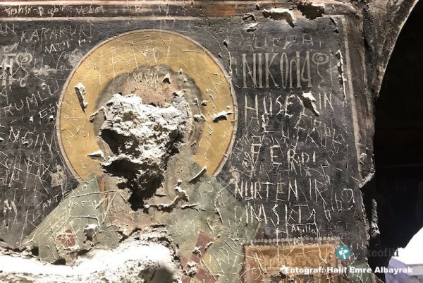 Σύμφωνα με την τουρκική ιστοσελίδα arkeofili, έχουν σβηστεί ή έχουν γραφτεί ονόματα επάνω σε όλα τα πρόσωπα των τοιχογραφιών, εκτός από όσες βρίσκονται στην οροφή.