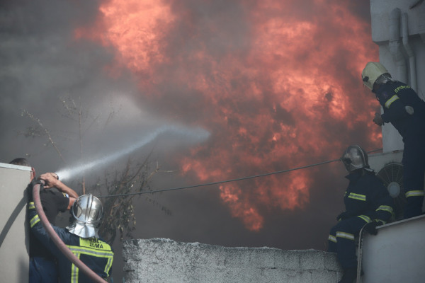 Η φωτιά έχει πάρει μεγάλη έκταση και έχει επεκταθεί σε όλο το κτίριο, ενώ λόγω των πλαστικών που καίγονται έχει καλυφθεί με πυκνό μαύρο καπνό ο ουρανός της Αττικής.
