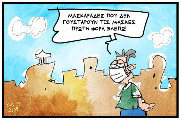 Μάσκες και μασκαράδες. Σκίτσο του Κώστα Κουφογιώργου για το Dikaiologitika News.