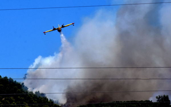 Ως προς τις επίγειες δυνάμεις, στην περιοχή επιχειρούν 61 πυροσβέστες με 24 οχήματα, τέσσερις ομάδες πεζοπόρων τμημάτων και ικανός αριθμός χωματουργικών μηχανημάτων. Η φωτιά που εκδηλώθηκε χθες το απόγευμα, περίπου στις 6.30, εξαπλώθηκε πολύ γρήγορα λόγω των ισχυρών ανέμων που εξακολουθούν να πνέουν στην περιοχή, δυσχεραίνοντας το έργο των πυροσβεστικών δυνάμεων.