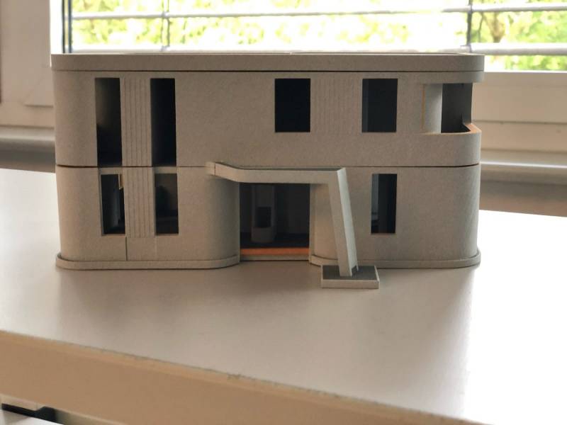 Σε κάθε επανάληψη της διαδρομής, το υπό κατασκευή σπίτι υψώνεται κατά δύο πόντους. «Στην αρχή τυπώνονται οι εξωτερικοί και εσωτερικοί τοίχοι, ενώ, ακριβώς όπως στο σχέδιο, μένουν κενά τα σημεία που αργότερα θα καλυφθούν από μονωτικά υλικά ή θα γίνουν οι ηλεκτρολογικές εγκαταστάσεις», εξηγεί.