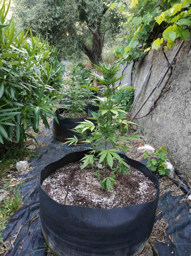 -8 δενδρύλλια κάνναβης ύψους έως 1,5 μέτρων, ευρισκόμενα στο στάδιο της συγκομιδής τα οποία και εκριζώθηκαν.