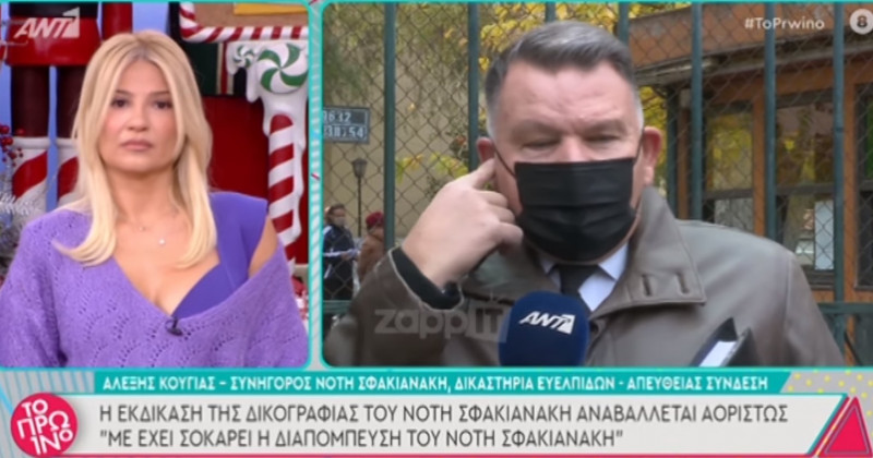 Η μεταξύ τους επικοινωνία δεν ήταν εφικτή, με τον Αλέξη Κούγια να μην επιθυμεί να τον διακόπτουν και την παρουσιάστρια να προσπαθεί να κάνει τις ερωτήσεις. Σύντομα προκλήθηκε μεταξύ τους έντονος εκνευρισμός, με τον ποινικολόγο να αποχωρεί από τη σύνδεση και τη Σκορδά να πηγαίνει σε διαφημίσεις, ώστε να τον πάρει τηλέφωνο.