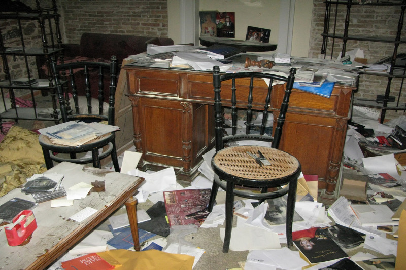 «Κάποια στιγμή, τις τελευταίες 20 ημέρες, οι παραπάνω αναφερόμενοι παραβατικοί εγκαταστάθηκαν, στην ουσία, στο κτήριο και αφού έψαξαν σχολαστικά και άδειασαν όλες τις βιβλιοθήκες -μουσικές και της διοίκησης-, τα γραφεία, το λογιστήριο και τους υπόλοιπους χώρους του, έκλεψαν ή κατέστρεψαν τα πάντα: κιθάρες, βιολοντσέλο κοντραμπάσο, άρπα, μεταλλόφωνα και ξυλόφωνα, 3 σετ ντραμς, πίνακες, γλυπτά και φωτιστικά, τηλεφωνικό κέντρο και υπολογιστές, σωληνώσεις ύδρευσης, θέρμανσης και καλωδιώσεις ΔΕΗ, με αποκορύφωμα την καταστροφή του σετ των μεγάλων κρουστών, που δεν μπορούσαν να μεταφέρουν, για να αποσπάσουν τα μεταλλικά στεφάνια των τυμπάνων και τέλος προχώρησαν στον ψεκασμό όλου του εσωτερικού του τριώροφου κτηρίου με σκόνη από τους πυροσβεστήρες.