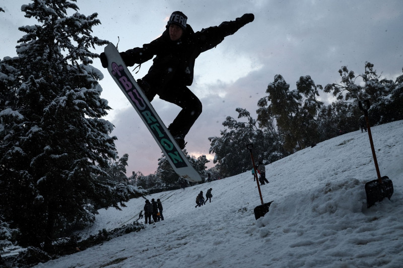 Μάλιστα όπως φαίνεται και στις εικόνες από το πρακτορείο eurokinissi που ακολουθούν, έστησαν άλματα, και προχώρησαν σε πολλαπλές καταβάσεις. Όλα αυτά χάρη στην ιδέα τους, να προσεγγίσουν τον χιονια που έντυσε στα λευκά την πρωτεύουσα, με αυτό τον ιδιαίτερο τρόπο σωματικής άσκησης.