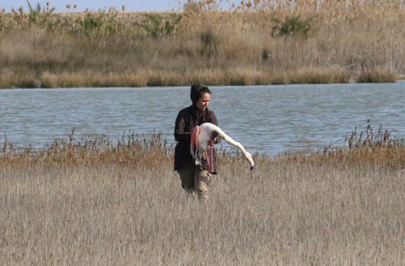 «Από τα τέλη Ιανουαρίου που παραλάβαμε τα δύο πρώτα φοινικόπτερα με συμπτώματα δηλητηρίασης, έως σήμερα έχουμε νοσηλεύσει στις εγκαταστάσεις μας συνολικά 9 πουλιά. Όλα τους είχαν καταπιεί σκάγια. Στην ακτινογραφία φαίνονται τα σκάγια στο στομάχι του πουλιού. Δεν είναι πυροβολημένο καθώς η νεκροψία έδειξε ότι τα είχε καταπιεί», σημείωσε ο κ. Καλπάκης.