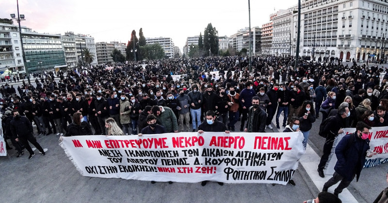 Δεκάδες διαδηλωτές έχουν συγκεντρωθεί από τις 18:00 στην πλατεία Συντάγματος και μπροστά στη Βουλή επί της οδού Αμαλίας, η οποία είναι κλειστή.
