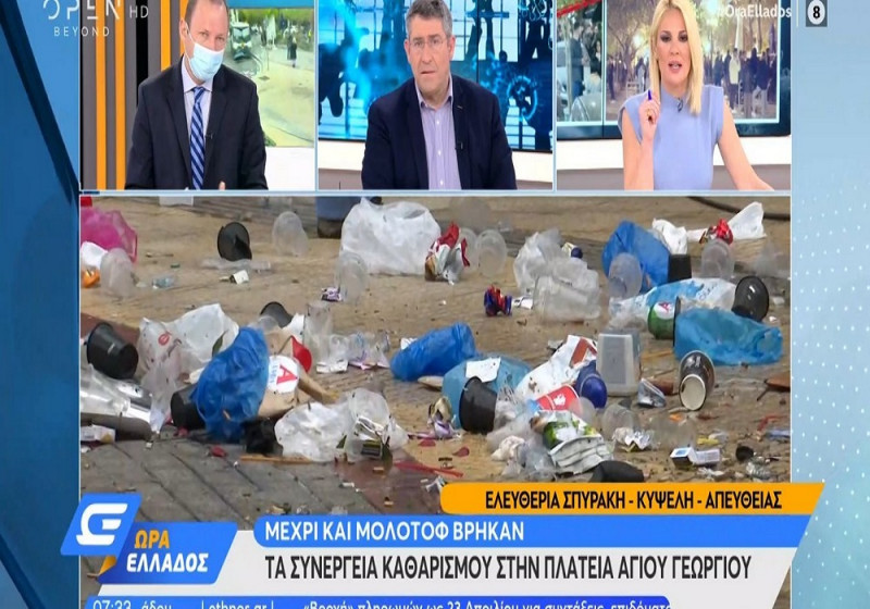 Ενα απέραντο σκουπιδαριό, το οποίο προσπαθούν να καθαρίσουν τα συνεργεία καθαρισμού, ποτά, μπουκάλια, σακούλες κι οτιδήποτε άλλο μπορούσε να πετάξουν οι παρευρισκόμενοι, που όχι μόνο δεν τήρησαν για άλλη μια νύχτα το μέτρο της απαγόρευσης κυκλοφορίας, αλλά έδειξαν ότι συν τοις άλλοις υπάρχει και πρόβλημα παιδείας, μιας και η εικόνα είναι αποκαρδιωτική...