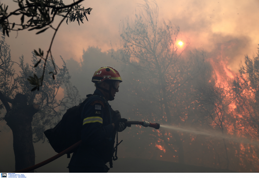 Η πυρκαγιά κατακαίει δασική έκταση αλλά και πουρνάρια και χόρτα, ενώ πύρινες εστίες υπάρχουν σε πολλά σημεία.