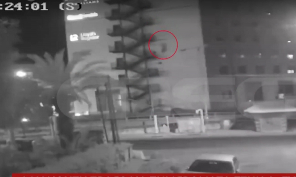Ο άνθρωπος μέσα σε 1 λεπτό και 43 δευτερόλεπτα έχει ανέβει 8 ορόφους. Είναι λίγα δευτερόλεπτα πριν την πτώση.