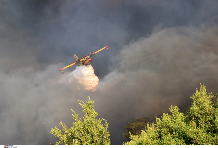Εντωμεταξύ, χθες, πυροσβεστικά πλοιάρια βοηθούσαν στην κατάσβεση καθώς η φωτιά είχε επεκταθεί και κάτω από την παλαιά εθνική οδό, σε περιοχές κατάφυτες, γεμάτες πεύκα μέχρι το νερό.