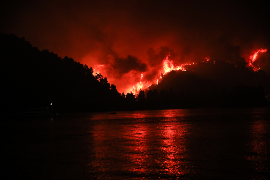 Εφιαλτική ήταν η νύχτα στην Εύβοια με τις φωτιές να μαίνονται στις Ροβιές, στη Μουρτιά, στις Κεχριές και φυσικά Λίμνη, απ' όπου απμακρύνθηκαν περισσότεροι από 1.000 άνθρωποι, κάτοικοι και τουρίστες, με πλωτά μέσα.