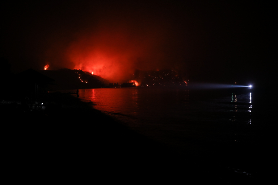 Βορειότερα, στις Ροβιές, το νέο μέτωπο που κατέβηκε μέχρι τη θάλασσα καίει ό,τι βρίσκει μπροστά του. Πήρε δυτική κατεύθυνση προς Αιδηψό, με συνέπεια μέσα στη νύχτα να γίνονται εκκενώσεις στις κατασκηνώσεις της μητρόπολης αλλά και στο γυναικείο μοναστήρι της Αγίας Ειρήνης της Χρυσοβαλάντου.