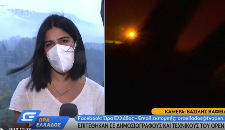 Στον «αέρα» μπορεί να μην έπαιξε η εικόνα της επίθεσης, ακούστηκαν όμως καθαρά οι φωνές της δημοσιογράφου που δέχονταν επίθεση.