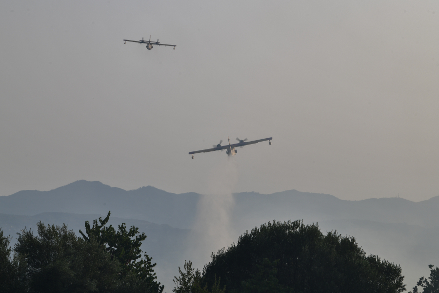 Στην επιχείρηση κατάσβεσης της φωτιάς παίρνουν μέρος πυροσβέστες με έξι υδροφόρες, ενώ ρίψεις νερού πραγματοποιούν ένα αεροσκάφος και δύο ελικόπτερα.
