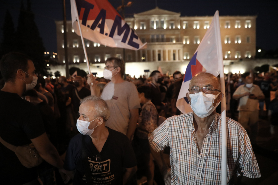 «Όχι στην ιδιωτικοποίηση της επικουρικής ασφάλισης. Κατάργηση όλων των αντιασφαλιστικών νόμων» φώναξαν στο Σύνταγμα, ομοσπονδίες, συνδικάτα και συλλογικότητες της αριστεράς, που συγκεντρώθηκαν για να δηλώσουν την αντίθεσή τους στο νομοσχέδιο για την επικουρική ασφάλιση.
