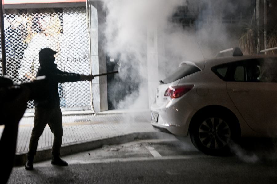 Ομάδα αγνώστων επιτέθηκε με πέτρες, μολότοφ και φωτοβολίδες κατά αστυνομικών, με την αστυνομία να απαντά με χειροβομβίδες κρότου λάμψης και χρήση χημικών.